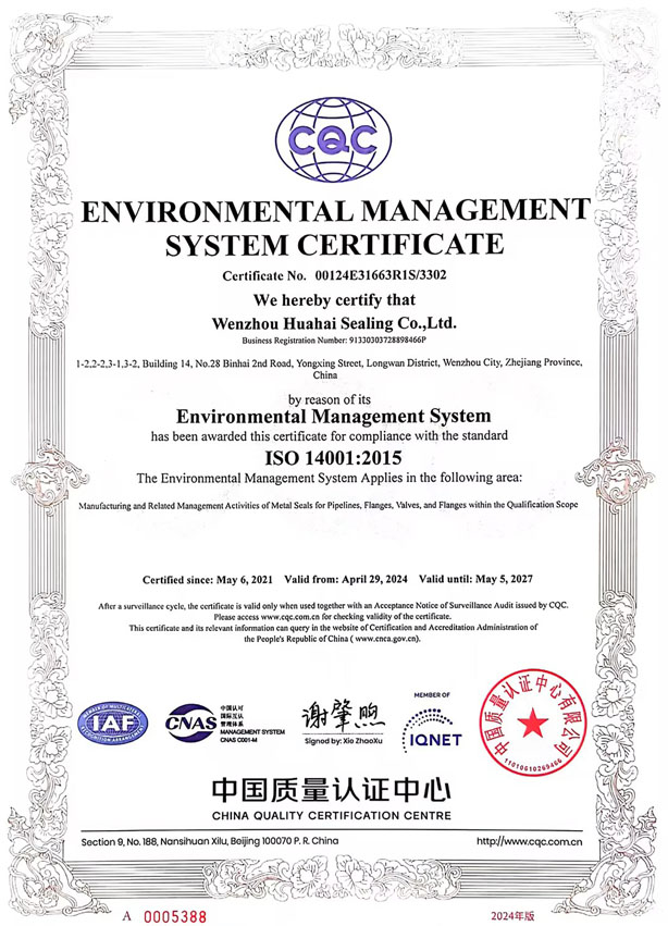 環境管理體系認證證書                                                           環境管理體系認證證書